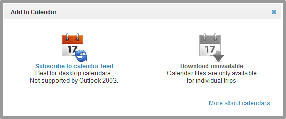 TripIt creates an iCalendar feed, which you can add as an additional calendar in Outlook and your smartphone.  This practice eliminated my need to create appointments for each flight, hotel, etc. in Exchange’s calendar. I estimate that this alone saves me about 10 hours a year in boring, medial appointment building tasks. If you don’t want to use the iCal feed, you also have the option to download individual appointments for each trip – a handy alternative.