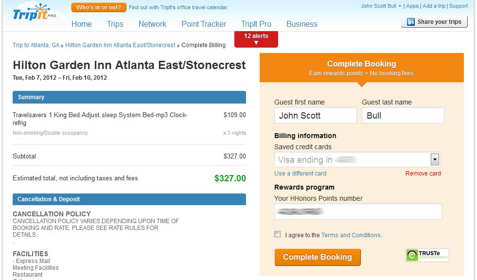 Step 6: The hotel reservation is immediately added to my TripIt itinerary