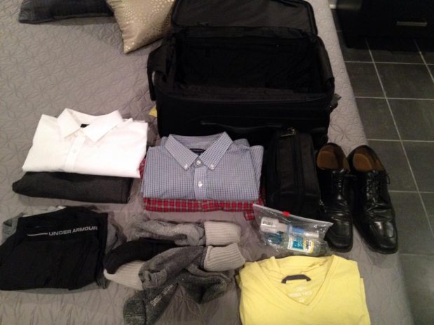 I never travel with more than 1 pair of jeans. If I have 3 consecutive days of meetings with the same group, I’ll take 2 pairs of slacks, but if it’s just 2 days, I’ll wear the same pants both days. Shirts are slightly different, but they can be re-worn as long as you’re not with the same people. I’ll often wear the exact same thing traveling up as I do traveling back.